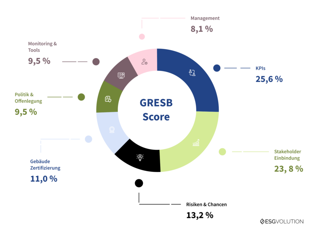 - Über strategische und praktische Nachhaltigkeitsmaßnahmen können sich die prozentualen Score-Werte und damit das GRESB-Ranking verbessern.